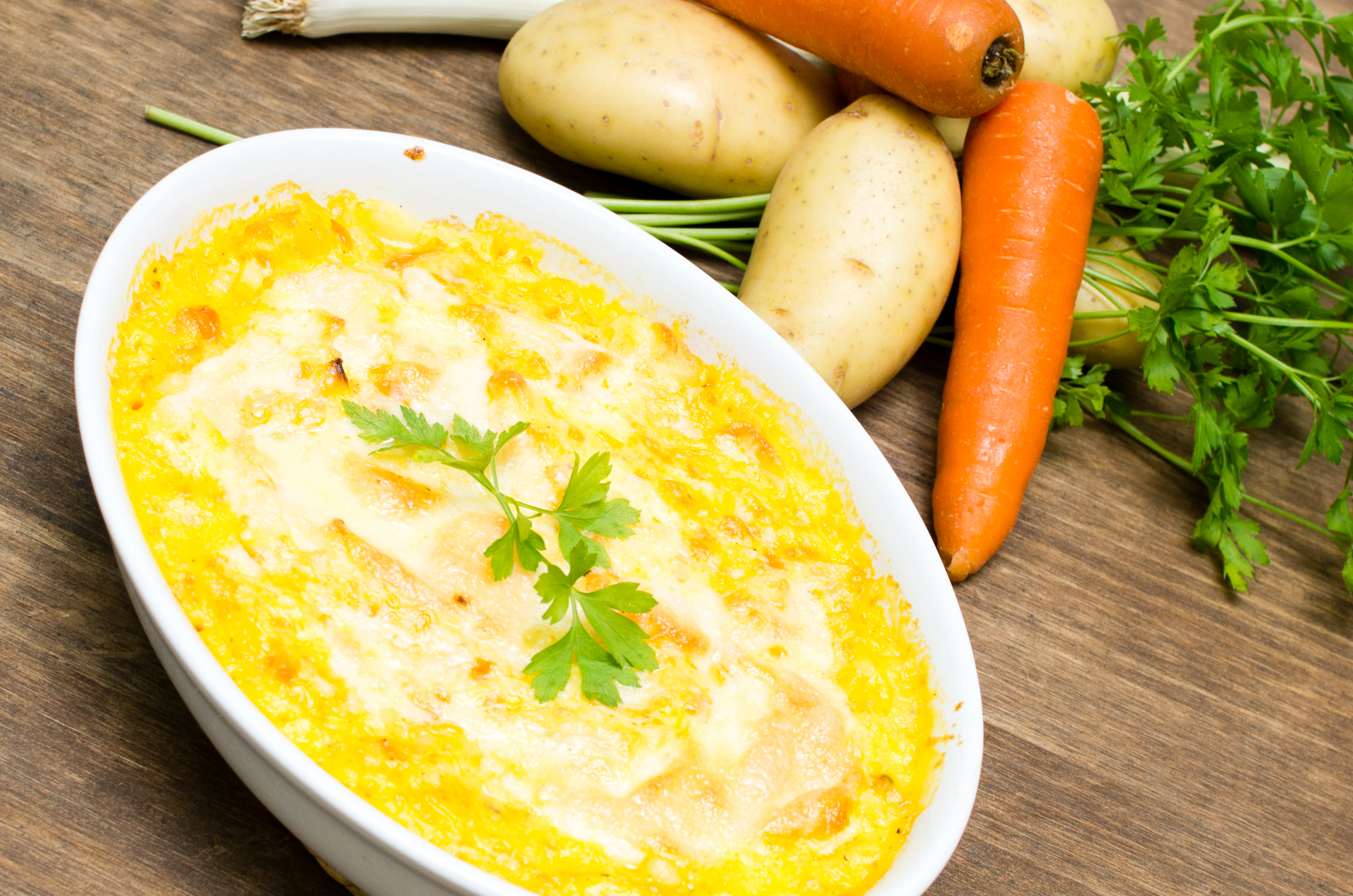 Preparación de las patatas y verduras gratinadas y en tortilla