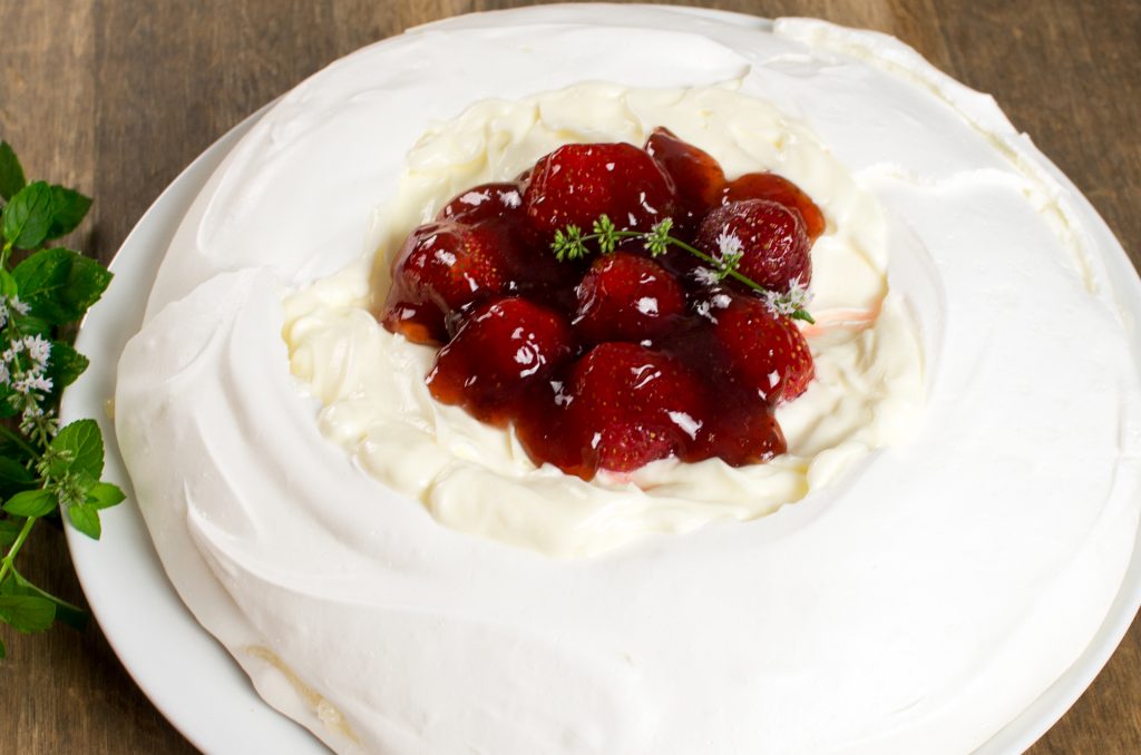 La receta de tarta Pavlova es una de mis favoritas. Esta de hoy os la presento con fresas y mermelada de frutos rojos. Pero podéis coronarla con frutas variadas a vuestro gusto. Luce muchísimo y está riquisima.